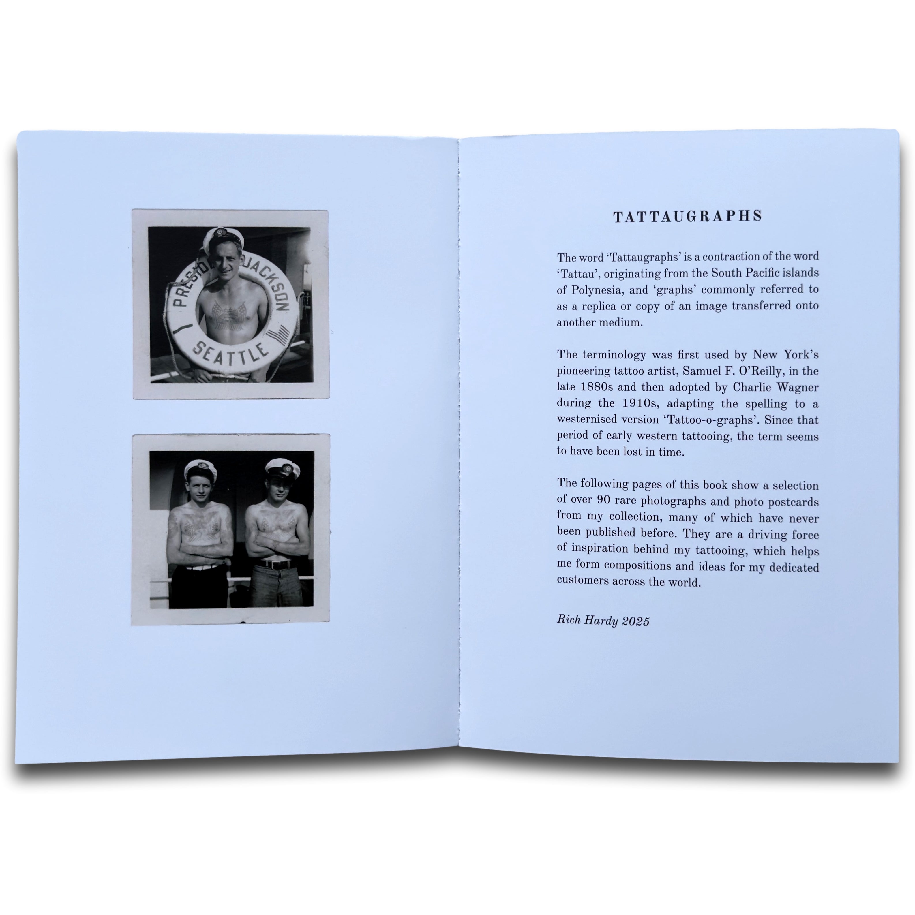 Artist: Rich Hardy Page Count and Size: 104 Pages | 8 1/4" (h) x 5 7/8" (w) / 21 x 15cm Type: Book TATTAUGRAPHS showcases nearly 100 rare vintage photographs...